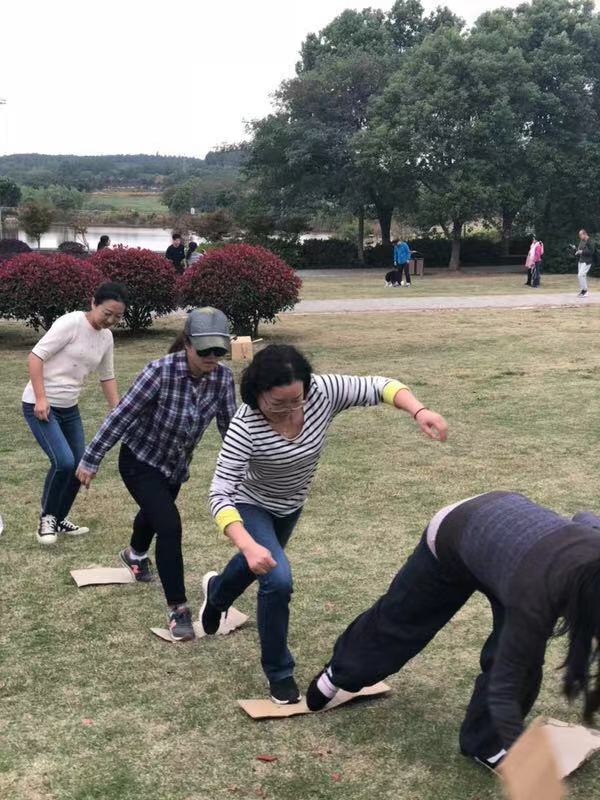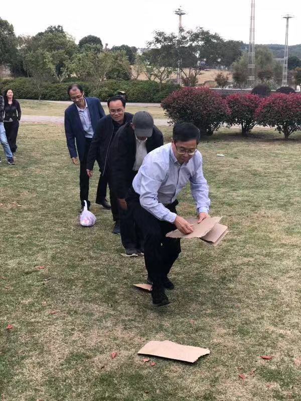 在“一圈到底”活动中,全院教师分为四组,每组8名队员,队员们手牵着手成一排站立,依次穿过同一个呼啦圈,在传递过程中,始终不能松开牵着的双手。经过三轮激烈的角逐,冠军队伍以默契的配合胜出。大桥过河活动更是收获了很多欢乐。自由组合的4人小队为参赛单位,每队使用纸板作为“渡河”的工具。有的队伍收放纸板整齐划一,有的队伍则状况频出,笑声不断。