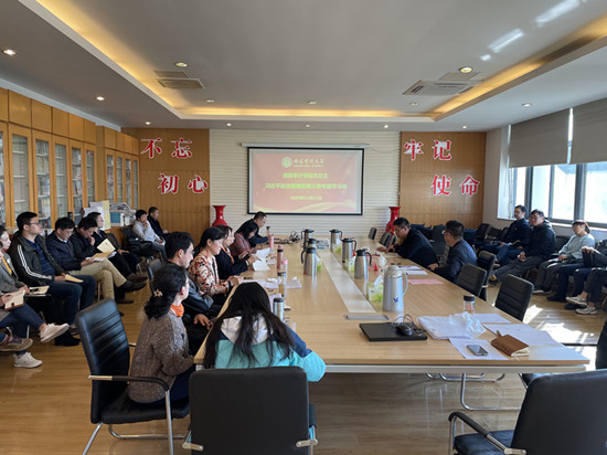 1111日下午,政府审计学院在敏行4楼会议室举行了“强化底线思维、防范化解风险”——《习近平谈治国理政》第三卷专题党课学习。政府审计学院党总支全体教工党员、研究生党支部书记和部分学生党员参加,校党委常委、组织部部长李乾文和校纪委委员、澄园书院党委书记谢刚听会指导。党课由政府审计学院党总支书记祝遵宏主讲。
