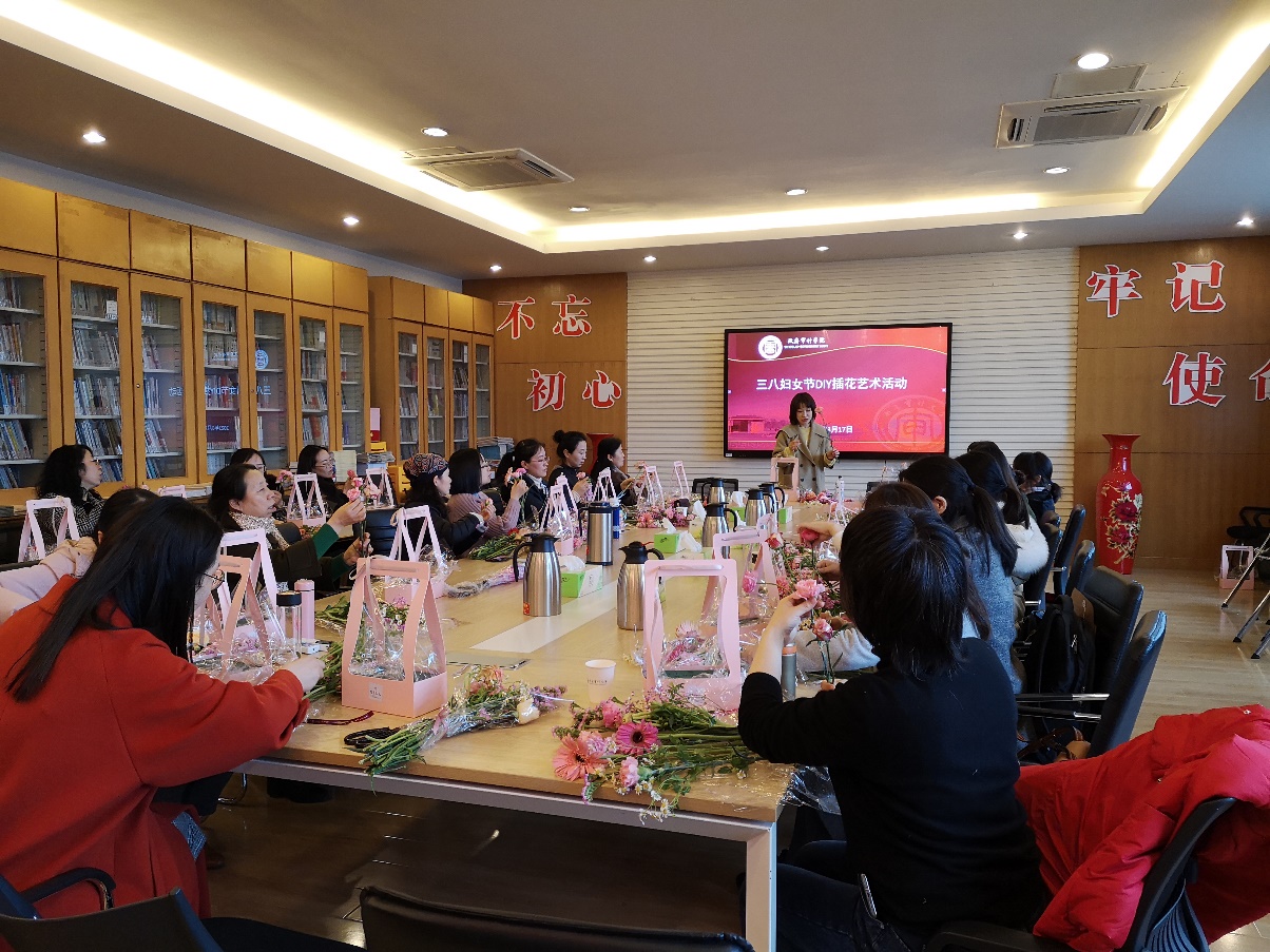烟花三月,春意正浓。为丰富女同胞业余生活,提升工作幸福指数,3月17日下午,政府审计学院组织全体女教职工开展三八妇女节DIY插花艺术活动。活动邀请了花艺老师现场授课,学院四十余名女教职工参与其中,共同体验插花艺术。