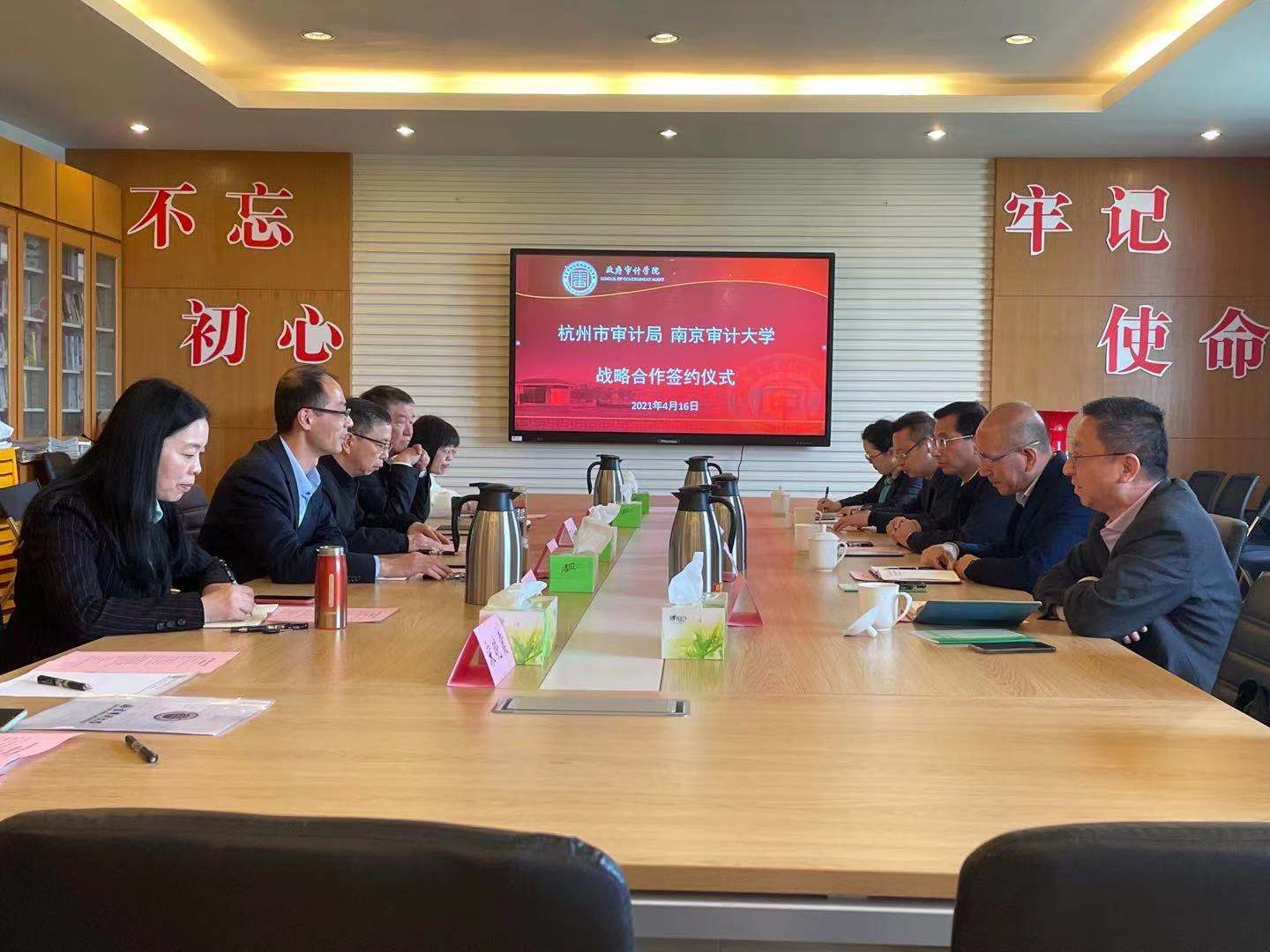 4月16日上午,政府审计学院与杭州市审计局战略合作协议签约仪式在敏行楼4楼会议室举行。杭州市审计局党组书记、局长王剑,williamhill中国党委副书记、副校长王会金出席签约仪式。政府审计学院院长周维培、国家审计研究院执行院长王素梅、政府审计学院副院长王士红参加仪式。签约仪式由政府审计学院执行院长陈骏主持。