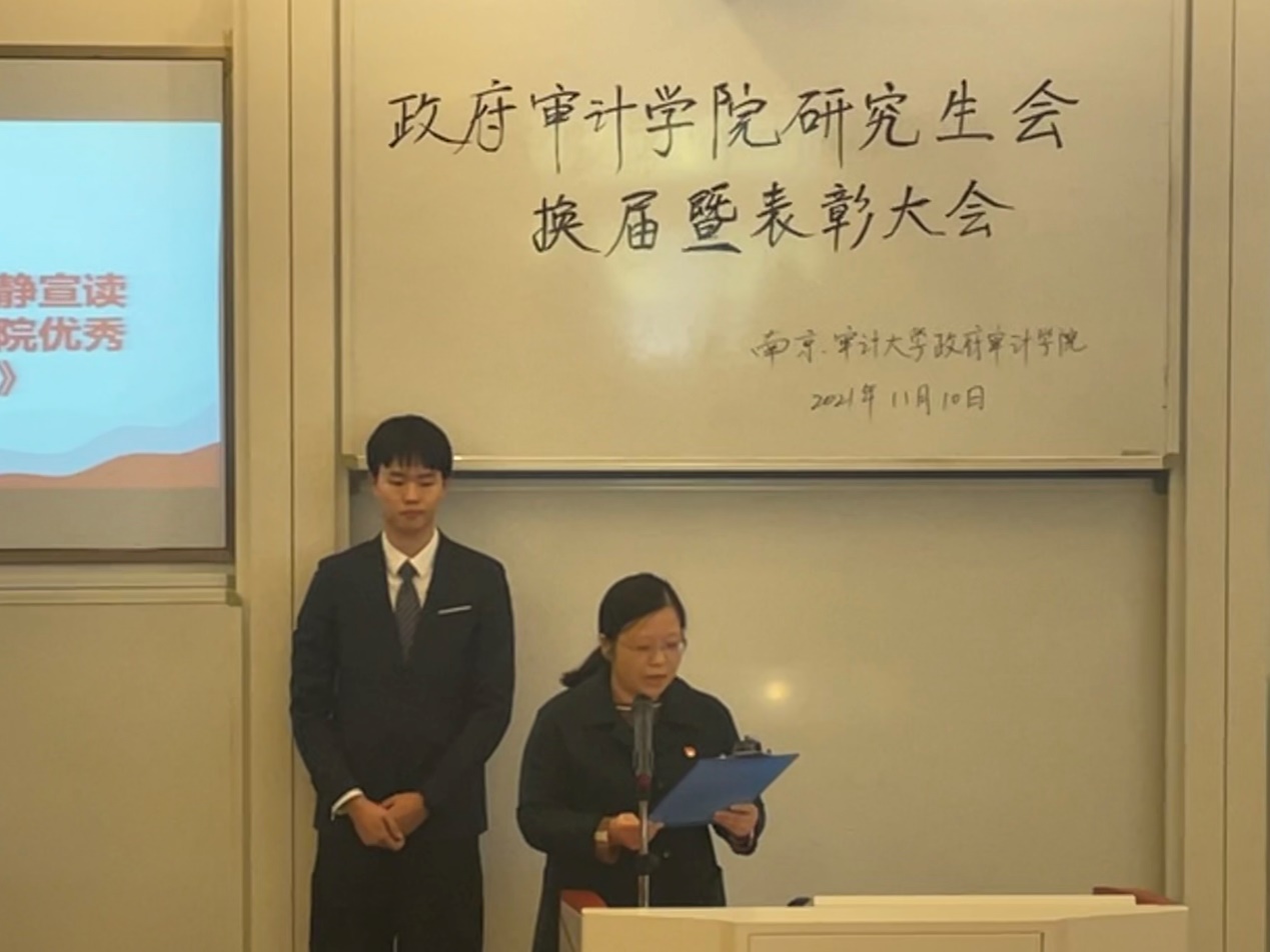 副院长刘静宣读《关于表彰政府审计学院优秀研究生干部的决定》。