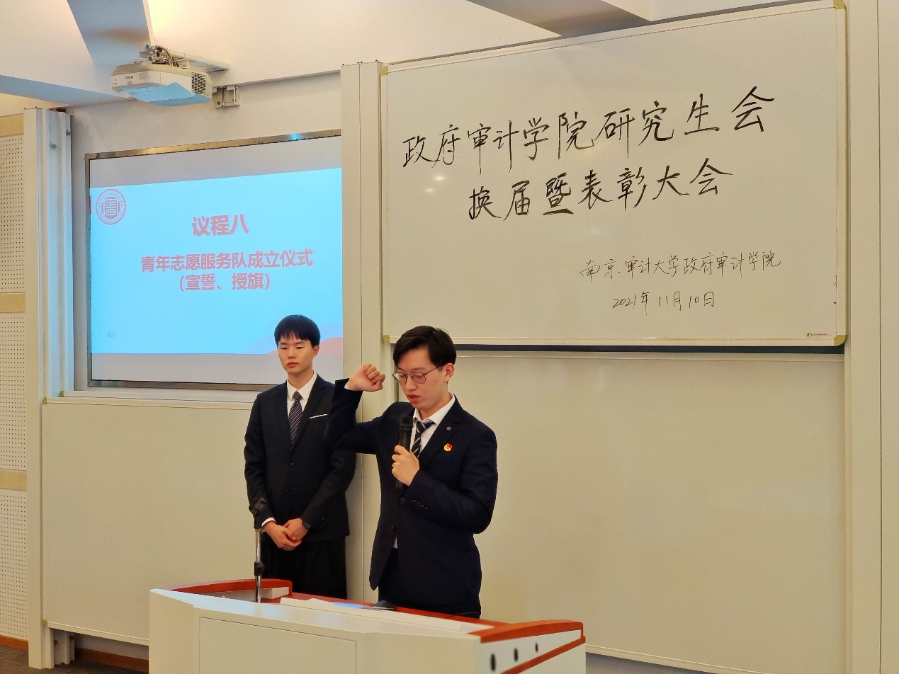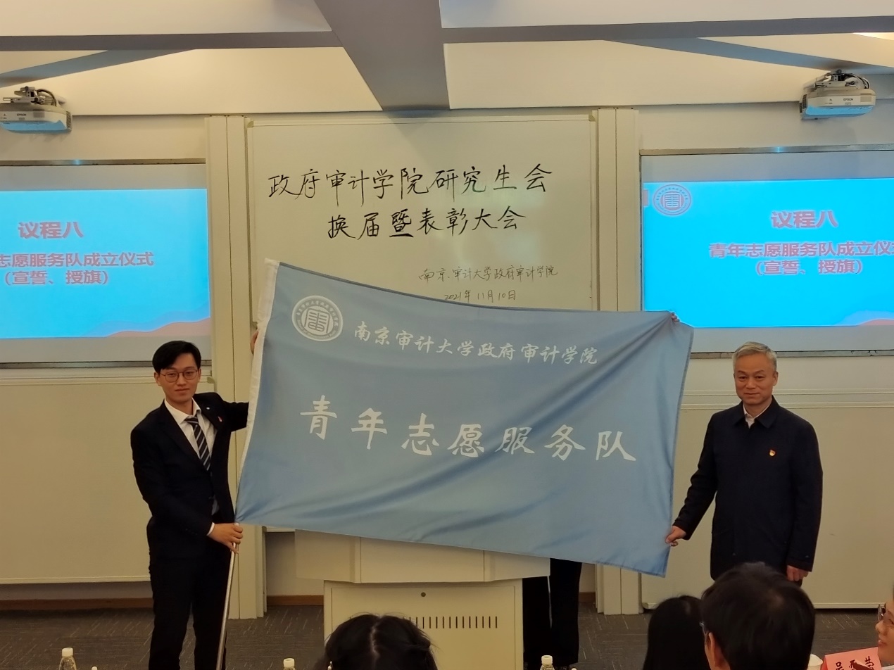 政府审计学院青年志愿服务队成立。在成立仪式上,队长王思尧代表志愿服务队宣誓,童瑞连书记向志愿服务队授旗。