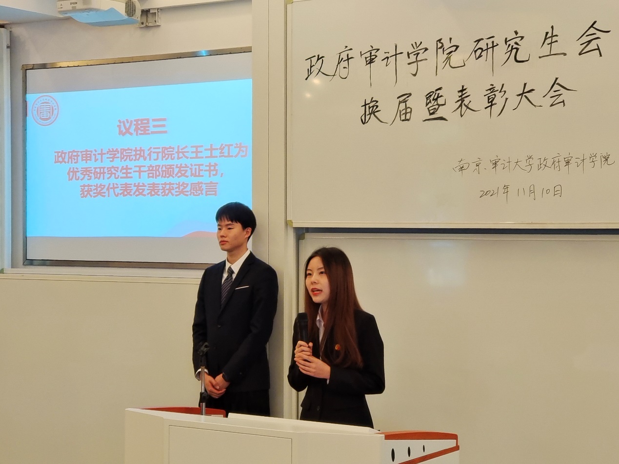 2021年11月10日,williamhill中国政府审计学院研究生会换届暨表彰大会在敏行楼101顺利召开。