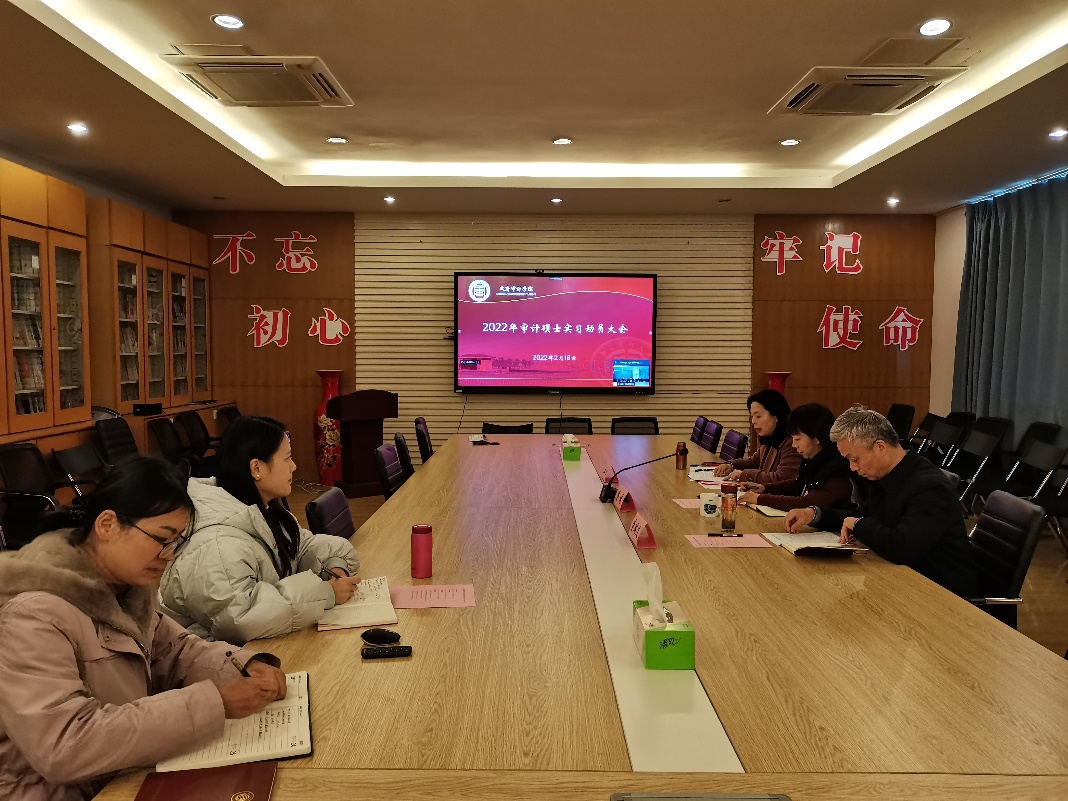 2月18日上午,政府审计学院召开2022年度研究生实习动员大会。受疫情影响,大会采用线上线下相结合形式进行,主会场设在敏行楼四楼会议室。党委研究生工作部部长鲁靖,政府审计学院院长周维培、党委书记童瑞连、执行院长王士红,学科与研究生办公室全体老师和21级审计专硕全体研究生参加会议。会议由王士红主持。