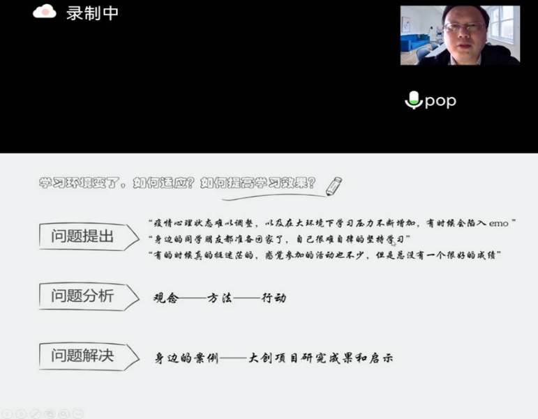 会上,周老师就“如何适应疫情防控下的学习生活”为同学们进行指导并提出:在观念上要化被动为主动;在方法上要有合理的学业规划;在行动上养成“每天首先做好三件事”“在每件事情上提高自控力”等良好的时间管理习惯。