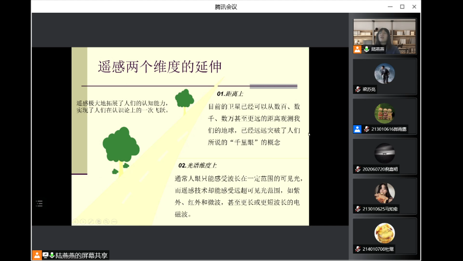 陆老师指出,地理信息技术离大家并不遥远,它被广泛地运用到我们的生活之中,处处可见。地理信息技术又被称为3S技术:即遥感(RS),全球卫星导航系统(GNSS)和地理信息系统(GPS)。诸如我们常看的天气预报、使用的地图导航甚至微信的启动页面也是使用地理信息技术中的遥感技术拍摄的。在介绍完3S技术的概念及其功能后,陆老师又同大家分享了3S的具体运用于土地资源监测、森林资源监测、水资源审计、医疗废弃物审计、矿产资源审计等领域的案例,让同学们大开眼界。