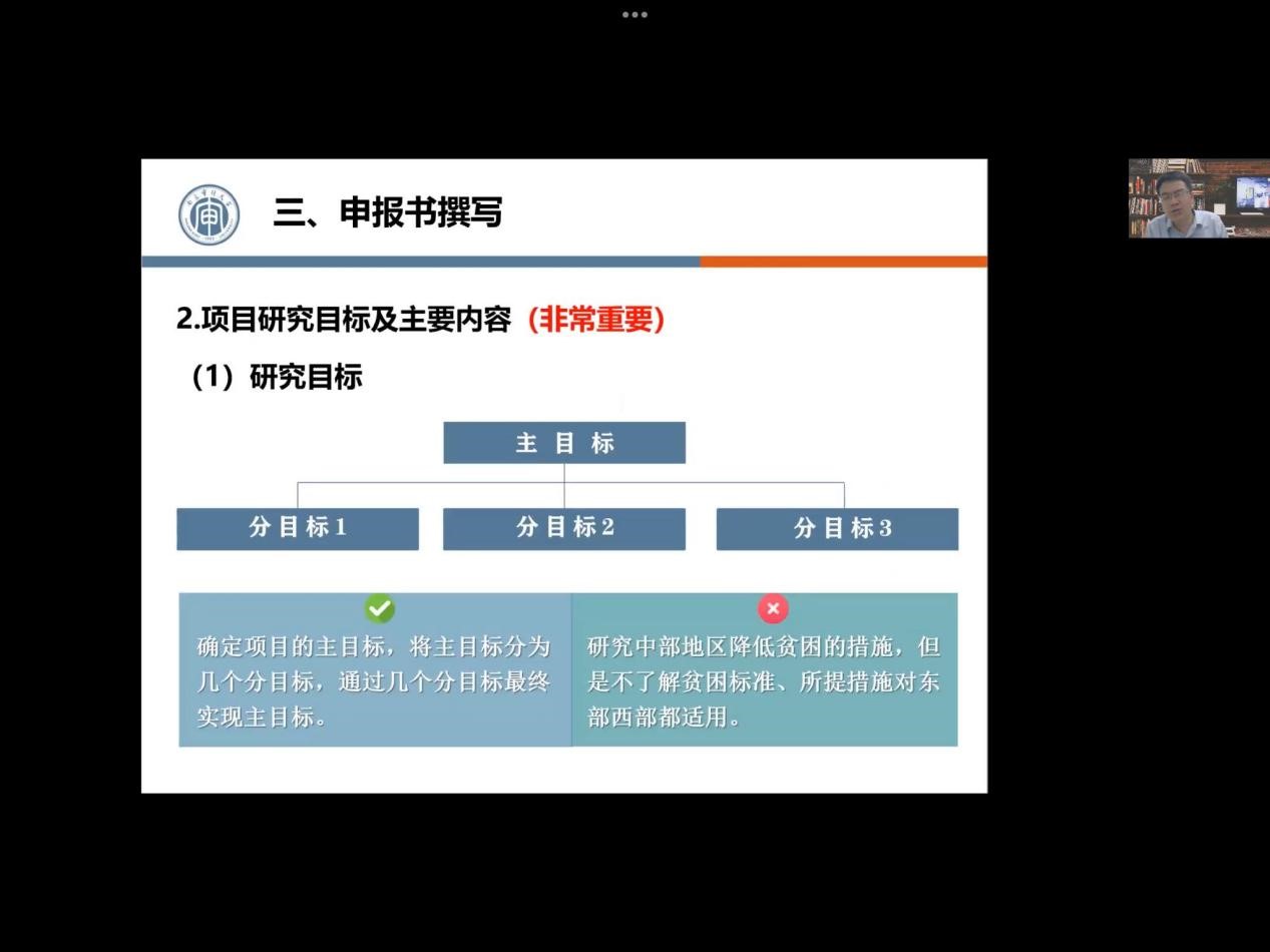 关于申报书的写作,樊老师从封面的格式和评审老师对项目书的印象、项目简介核心要素及其重要性、申请理由的三大常见误区和编写侧重、项目方案写作方法几个方面分享了他的建议。