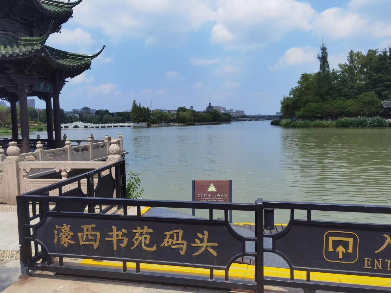 水环境审计之旅的第二站是南通濠河风景名胜区。濠河是南通的护城河,被誉为南通城的“翡翠项链”。团队成员沿着濠河行走,感受南通全面推行河长制五年多以来幸福河湖的建设成果。水是生命之源、生产之要、生态之基,水是南通之魂、江海之魄、文脉之续。南通濒江临海,河网密布,全市水域面积778平方公里,河道总长达2.4万公里。自2017年南通市委、市政府下发全面推行河长制的通知以来,已有6733名河长共同守护碧水清波。南通市始终坚持为满足人民美好生活向往之需、满足江海大地生态美丽之需而治水兴水,让河道治理成为连心工程、民心工程。“人不负青山,青山定不负人。”南通市副市长刘洪表示,南通将持续深化河长制和幸福河湖建设,以更高站位、更大力度、更实举措,努力绘就江海特色的幸福河湖新画卷。环濠河观赏,河畅水清、岸绿景美,团队成员深刻感受到了河长制实行下的江海古城的独特魅力。