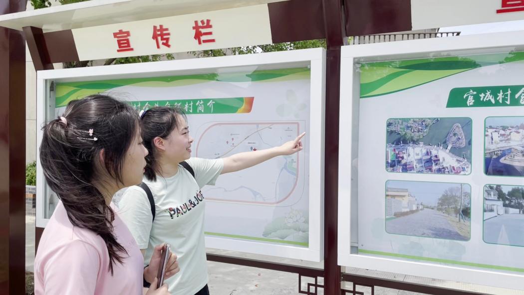 “只此青绿”小分队首先前往高淳区官城村含头自然村的宣传栏进行浏览、记录,对于含头自然村整治前后的变化及近几年规划有了初步的认知。