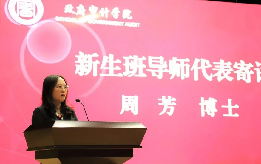 周芳代表新生班导师们向本科新生给出建议:要学会自律生活,热爱生活;要养成独立思考的习惯;要树立好目标,做好规划;要培养职业荣誉感。