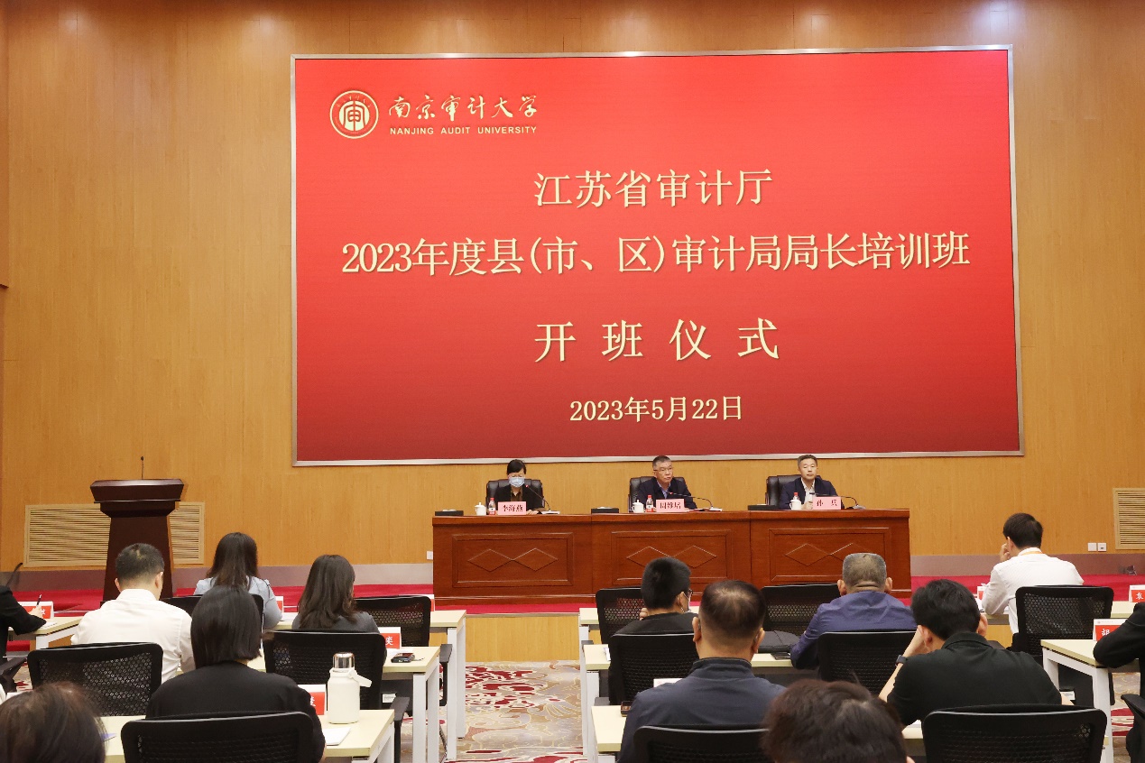 5月22日上午,江苏省审计机关县(市、区)审计局局长培训班开班典礼在审计干部教育学院举行。江苏省审计厅党组成员、副厅长李海洋,江苏省审计厅人事教育处处长孙兵,williamhill中国政府审计学院院长周维培以及来自江苏省各县(市、区)审计局的60余名学员参加典礼。开班典礼由政府审计学院党委书记李海燕主持。